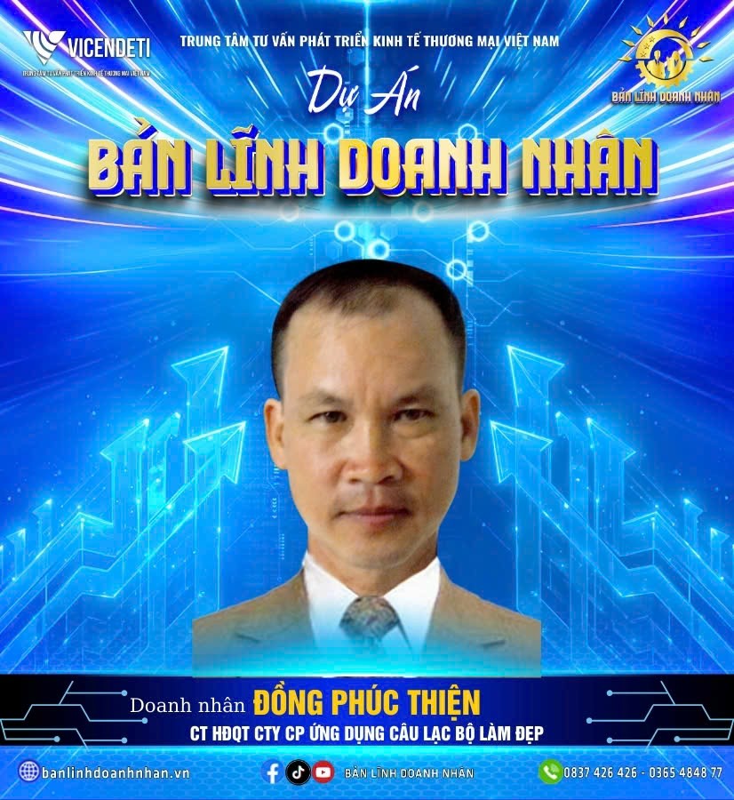 Dự án “Bản lĩnh Doanh nhân” hân hạnh chào đón sự tham gia của ông Đồng Phúc Thiện – Chủ tịch Hội đồng Quản trị Công ty Cổ phần Ứng dụng Câu lạc bộ Làm đẹp. Công ty Cổ phần Ứng dụng Câu lạc bộ Làm đẹp dưới sự điều hành của ông Đồng Phúc Thiện đã có nhiều năm kinh nghiệm trong việc xây dựng nền tảng kết nối cộng đồng doanh nhân. Doanh nghiệp dù hoạt động trong lĩnh vực chăm sóc sắc đẹp nhưng cũng luôn chú trọng đến các giải pháp mang tính ứng dụng cao, kết hợp giữa nhu cầu thị trường và định hướng phát triển bền vững. Việc hình thành mô hình “Việt Nam Thương Hội” được xem là một bước tiến quan trọng, mở ra cơ hội để các doanh nghiệp có mã số thuế chính thức được tham gia một cộng đồng chung, nâng cao năng lực cạnh tranh và cùng nhau kiến tạo giá trị.