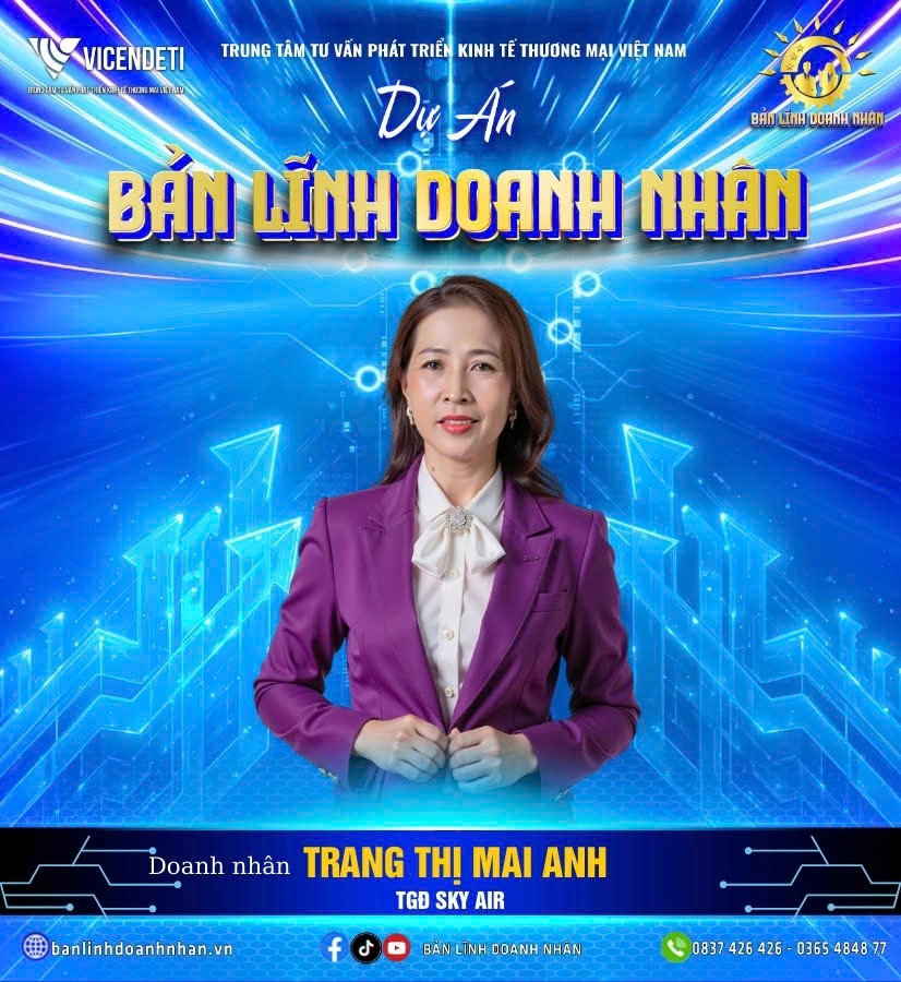 Dự án “Bản lĩnh Doanh nhân” vinh dự chào đón sự tham gia của bà Trang Thị Mai Anh – Tổng Giám đốc Công ty TNHH Nhân lực Sky Air. Công ty TNHH Nhân lực Sky Air dưới sự điều hành của bà Mai Anh hoạt động với sứ mệnh cung cấp các giải pháp nhân lực phù hợp, chú trọng đến đào tạo và phát triển kỹ năng cho người lao động. Trong bối cảnh nhu cầu nhân sự ngày càng khắt khe và thay đổi nhanh chóng, Sky Air tập trung vào việc nâng cao năng lực thực tiễn, tạo ra môi trường học tập – làm việc gắn kết giữa kiến thức và trải nghiệm. Điều này vừa hỗ trợ người lao động nắm bắt cơ hội vừa giúp doanh nghiệp có thêm nguồn lực bền vững để cạnh tranh trong thời kỳ hội nhập.